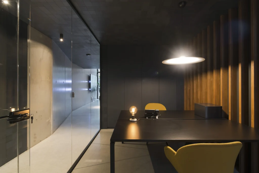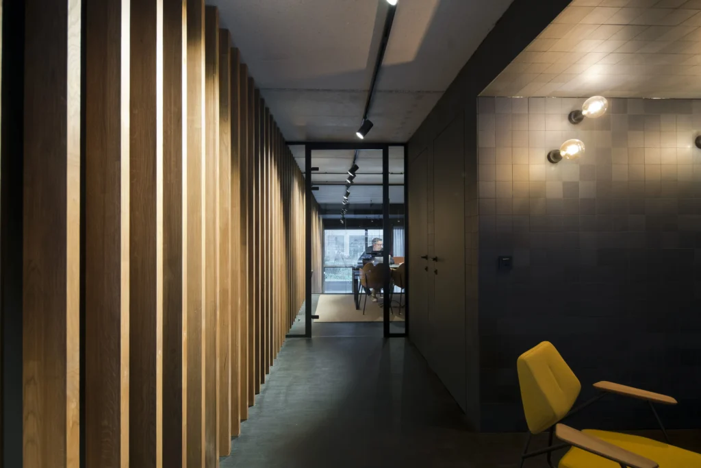 Panisol Partitions heeft een bijzonder kantoorontwerp gecreëerd en uitgevoerd voor Renozen, een expert in badkamer renovatie. Het ontwerp benadrukt een excentrieke en donkere sfeer, waarbij het gebruik van licht een cruciale rol speelt. De ruimte is zorgvuldig ingericht om de gewenste intimiteit en luxe te creëren, met strategisch geplaatste lichtbronnen die de architecturale elementen accentueren. Dit kantoor weerspiegelt het vakmanschap en de stijl die onze klant in hun renovaties biedt, zo ontstaat een inspirerende werkomgeving die zowel functioneel als visueel indrukwekkend is.